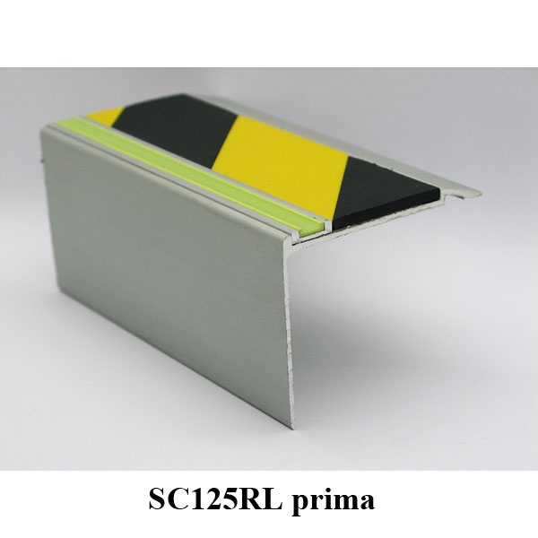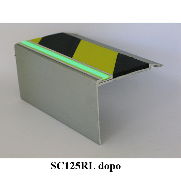 Paragradino in alluminio con inserto in PVC antisdrucciolo e banda fluorescente (Codice SC125RL)